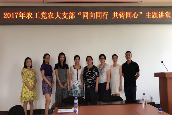 7月7日,农工党农大支部在外国语学院三楼会议室开展了“同向同行 共铸同心”主题讲堂活动。校农工党全体党员、党委统战部全体成员参加了活动。活动中,农工党党员祝洪艳结合自己的学习,与大家共同分享了黄大年事迹精神,并号召大家要学习楷模精神,不负使命。农工党党员邢鹤就青年学者如何肩负新时代使命进行主题讲演,她从香港回归的历程到新时代青年学者的追求和人格,倡导广大知识分子要“有思想”“有态度”“有血性”“有情怀”,要永远跟党走,为实现伟大的中国梦,撸起袖子加油干!全体与会人员就两大主题展开深入的讨论。